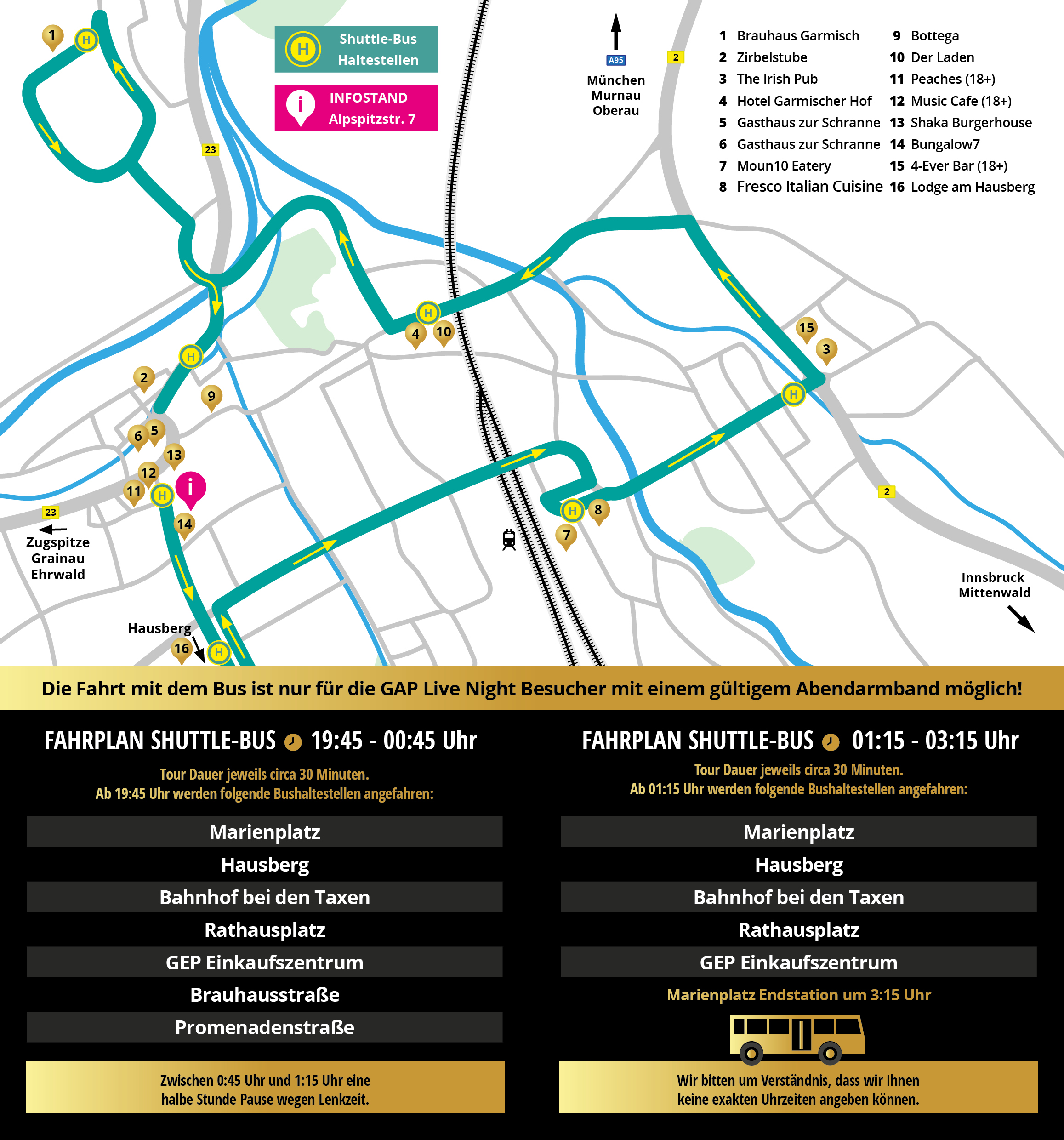 Ein herzliches Dankeschön geht an die Marktgemeinde Garmisch-Partenkirchen sowie alle teilnehmenden Locations, Künstler und die Werbepartner.